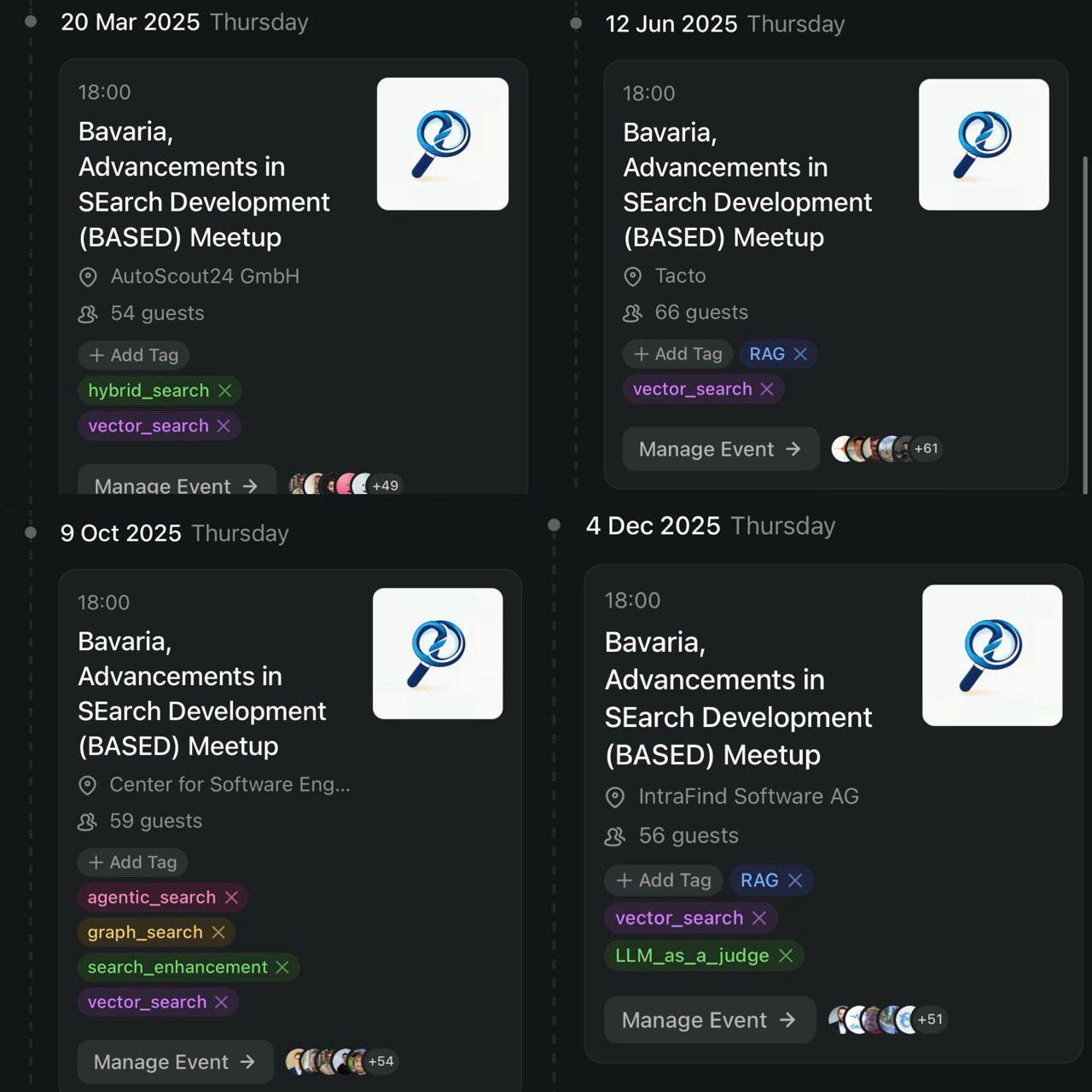 P.S. An obvious choice for tech meetups is tech companies. Who we can certainly recommend in Munich: AutoScout24 & Tacto AI, and IntraFind, our amazing hosts in 2025.